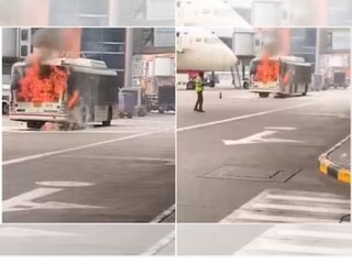 या घटनेचा व्हिडिओ सोशल मीडियावर समोर आला असून त्यात संपूर्ण बस ज्वाळांनी वेढलेली दिसते. जवळच विमानतळ कर्मचाऱ्यांना परिसराची सुरक्षा करताना पाहिले गेले. विशेष म्हणजे आग लागलेली बस एका विमानाच्या अगदी जवळ उभी होती. त्यामुळे काही क्षणांसाठी भीतीचे वातावरण निर्माण झाले होते.