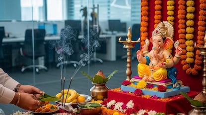 Ganesh Chaturthi 2025: कामाच्या ठिकाणी गणेशमूर्तीची स्थापना केली जाते जेणेकरून काम सुरळीत चालेल आणि बाप्पाच्या आशीर्वादाने व्यवसाय भरभराटीला येईल. कार्यालयात गणपतीची मूर्ती ठेवण्यासाठी काही नियम आहेत, ते पाळणे आवश्यक मानले जाते.
