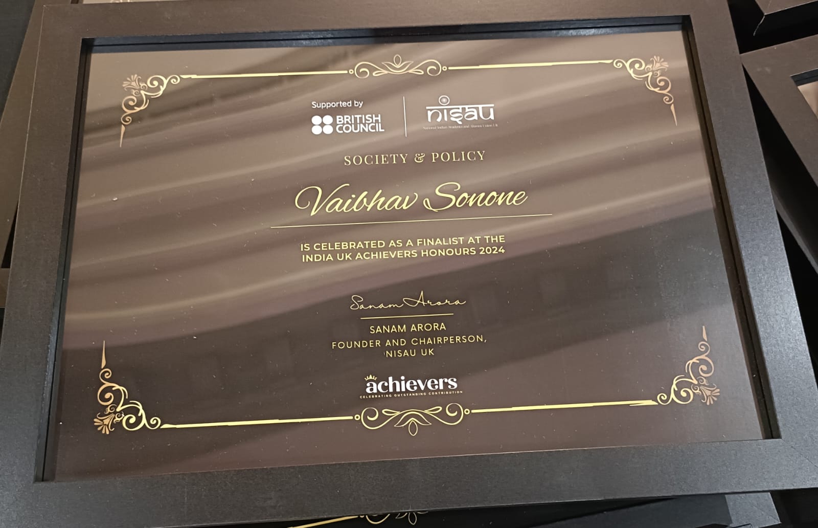 वाशिम : ग्रामीण भागातील विद्यार्थी आता फक्त राज्य आणि राष्ट्रीय स्तरावरच नव्हे तर आंतरराष्ट्रीय स्तरावरही आपल्या देशाचे नाव उंचावताना दिसत आहे. विदर्भातील ग्रामीण भागातील एका मजूराचा मुलगा वैभव सोनोने याने पुन्हा एकदा हे सिद्ध केले आहे. ब्रिटिश कौन्सिल, व्यापार-व्यवसाय विभाग ब्रिटिश सरकार आणि यूके राष्ट्रीय विद्यार्थी संघटना (NISAU) यांच्या संयुक्त विद्यमाने आयोजित एका समारंभात 28 फेब्रुवारीला लंडन येथे वैभवला India-UK Achievers Honours हा सन्मान देण्यात आला. सोसायटी आणि पॉलिसी या श्रेणीमध्ये त्याचा गौरव करण्यात आला. वैभव यामध्ये फायनलिस्ट होता आणि महत्वाची गोष्ट म्हणजे या सन्मानाची घोषणा 27 फेब्रुवारी रोजी इंग्लंडच्या संसदेत करण्यात आली.