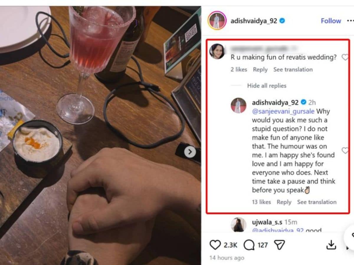 आदिश या कमेंट्सवर भडकला. एका फॅनला रिप्लाय देत त्याने लिहिलंय, "असा मुर्खासारखा प्रश्न तुम्हा का विचारत आहात. मी कोणाची खिल्ली उडवलेली नाही. हा जोक मी माझ्यावर केला आहे. तिला प्रेम मिळालं, ती आनंदी आहे. ज्याला कोणाला प्रेम मिळालं त्या सगळ्यांसाठी मी आनंदी आहे. पुढेच्या वेळेस बोलण्याआधी विचार करा."