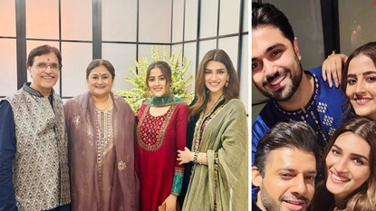 क्रितीनं शेअर केलेल्या फोटोंमध्ये क्रितीसोबत पहिल्या फोटोत वडील राहुल, आई गीता आणि बहीण नुपूर सेनन दिसत आहेत. दुसऱ्या फोटोत क्रितीसोबत नुपूर, तिचा बॉयफ्रेंड स्टेबिन बेन आणि कबीर बहिया आहे. क्रितीनं सेलिब्रेशनसाठी नेव्ही ब्लू आणि गोल्डन रंगाचा ड्रेस घातला आहे, तर कबीरनं इलेक्ट्रिक ब्लू रंगाचा कुर्ता व पॅन्ट घातली आहे. या फोटोमध्ये क्रितीचे हेअर आणि मेकअप आर्टिस्ट अॅड्रियन जेकब्स आणि आसिफ अहमद हेही दिसत आहेत. आणखी एका फोटोत ‘फुकरे’ चित्रपटातील अभिनेता वरुण शर्मा आणि कास्टिंग डायरेक्टर मुकेश छाब्रा दिसत आहेत.