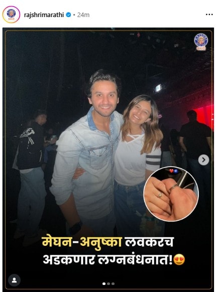 तर अनुष्काने देखील तिच्या इन्स्टाग्राम दोघांचा क्लोज फोटो शेअर केला आहे. ज्यात मेघनचा चेहरा पूर्ण दिसत नाहीये. तिनेही सेम इमोजी पोस्ट केले आहेत. दोघांनी त्यांच्या पोस्टमध्ये एकमेकांना टॅग केलेलं नाही. पण राजश्री मराठीने त्यांच्या लग्नाबाबत पोस्ट करत माहिती दिली आहे.