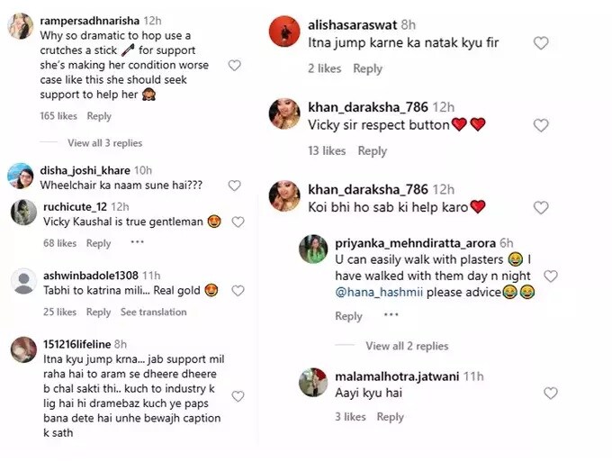 एका युझरने कमेंट करत लिहिलंय, 'इतकं नाटक रचण्याची काय गरज आहे? जर तुम्हाला चालण्यात अडचण येत असेल तर तुम्ही क्रॅच स्टिक वापरू शकता. असे करून त्यांची अवस्था बिकट होत आहे. रश्मिकाने जरा आधार घ्यावा. दुसऱ्या यूजरनं लिहिलंय, 'एवढी उडी का? जेव्हा आधार असेल तेव्हा ती हळू आणि आरामात चालू शकते. आणखी एका युझरने कमेंट करत लिहिलंय, 'एवढ्या उड्या मारण्याचं नाटक का करता? वेदनाही कुठेतरी कोपऱ्यात रडत असाव्यात.