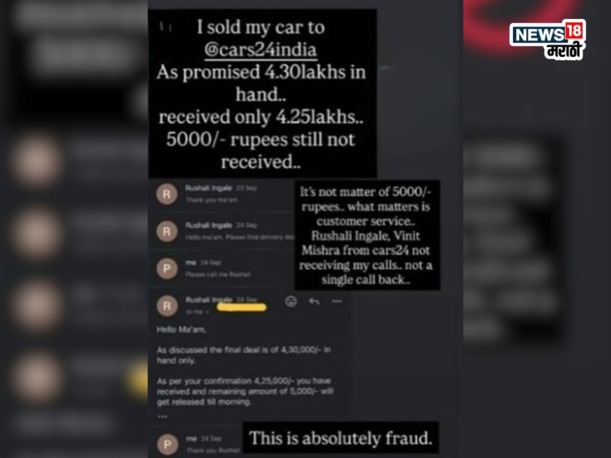 प्रियांकाने सांगितले की, तिने संबंधित कंपनीला तिची कार विकली होती. "आमच्यात ठरल्याप्रमाणे मला गाडीचे ४ लाख ३० हजार रुपये मिळणार होते. परंतु, कंपनीकडून मला केवळ ४ लाख २५ हजार रुपयेच मिळाले. अजूनही माझे ५ हजार रुपये मिळालेले नाहीत," असे तिने पोस्टमध्ये स्पष्ट केले.