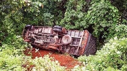 देवरुख (रत्नागिरी) : संगमेश्वर तालुक्यातील फुणगूस-जाकादेवी या अरुंद आणि अवघड मार्गावर गुरुवारी सकाळी 9 वाजण्याच्या सुमारास एक ट्रक रस्ता सोडून 20 ते 25 फूट खोल दरीत कोसळला. सुदैवाने या भीषण अपघातात कोणतीही जीवितहानी झाली नाही. विशेष म्हणजे, गुगल मॅपवर दाखवलेल्या 'जवळच्या' मार्गामुळे या ठिकाणी गेल्या काही दिवसांतील हा दुसरा अपघात आहे.