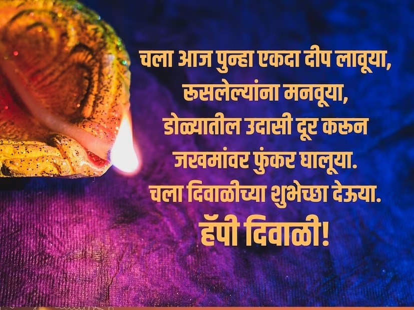 Happy Diwali Wishesh in Marathi : आपला शुभेच्छा मेसेज सगळ्यात वेगळा असावा, असं प्रत्येकाला वाटतं. त्यामुळे इंटरनेटवर बरंच सर्च करून आपण मेसेज शोधून काढतो. त्यात बराच वेळ जातो. त्यामुळे आम्ही तुमच्यासाठी निवडक असे दिवाळीचे शुभेच्छा मेसेज एकाच ठिकाणी देत आहोत.