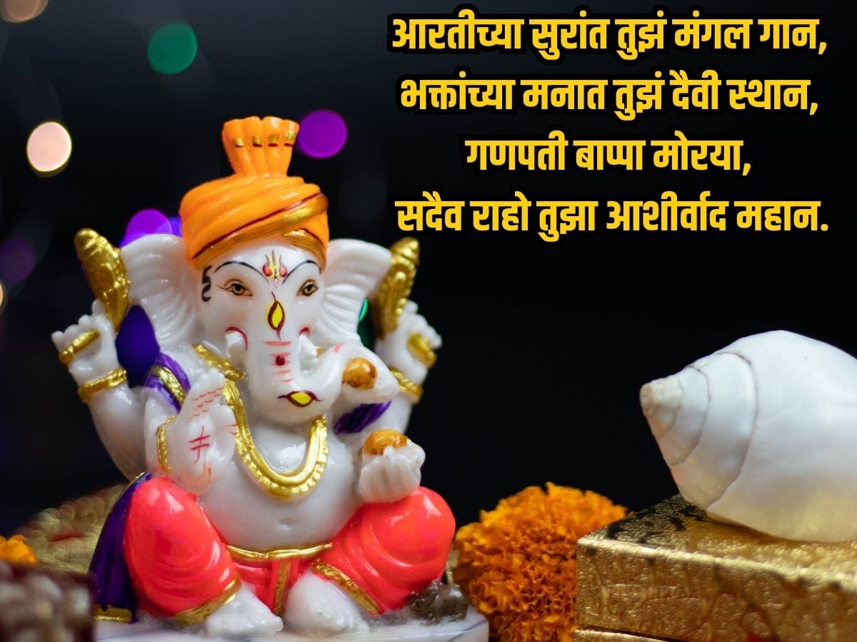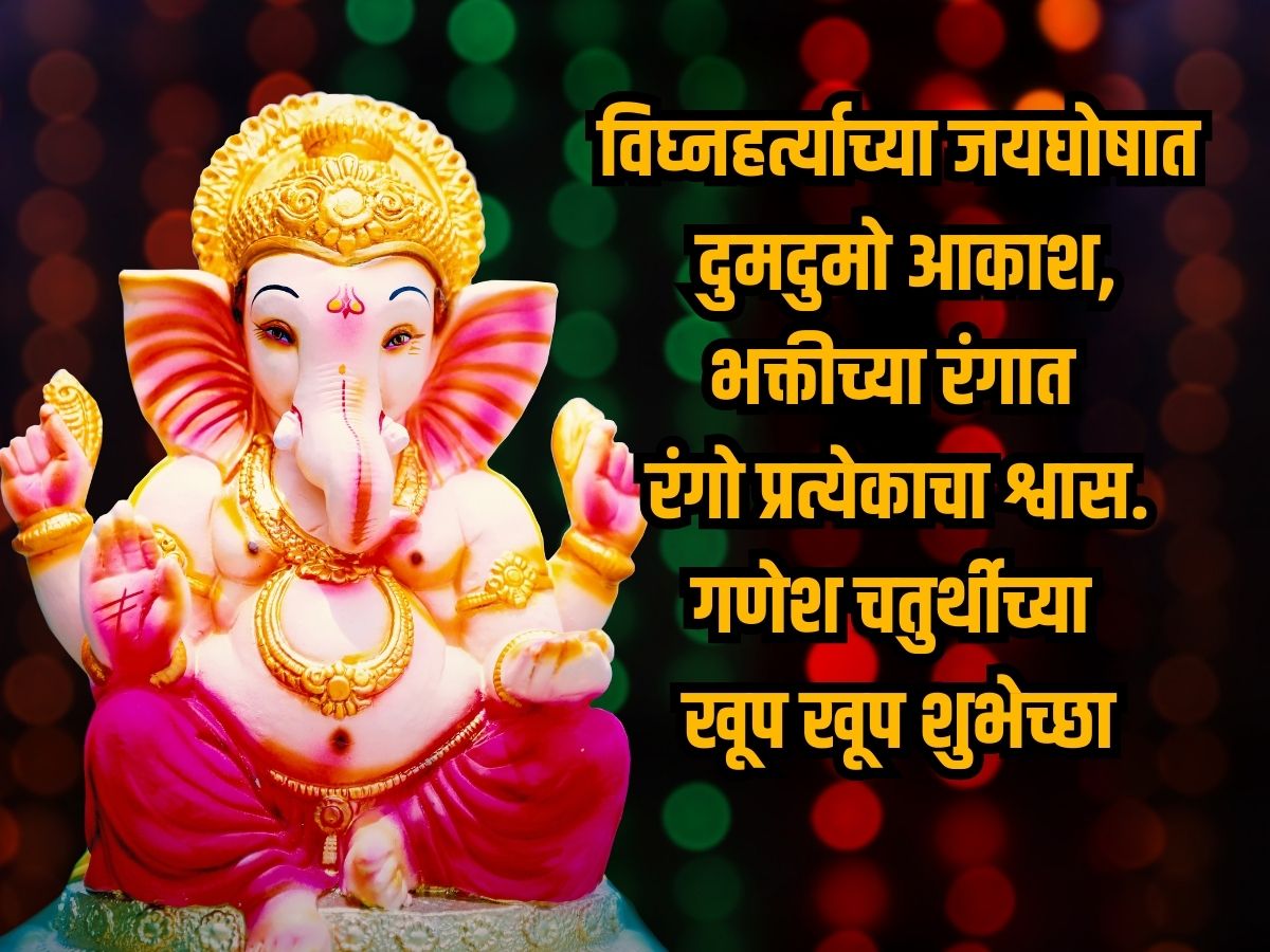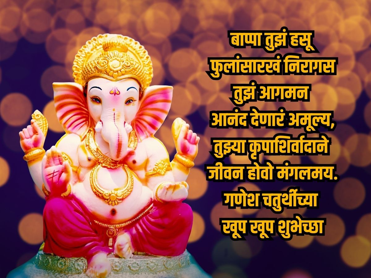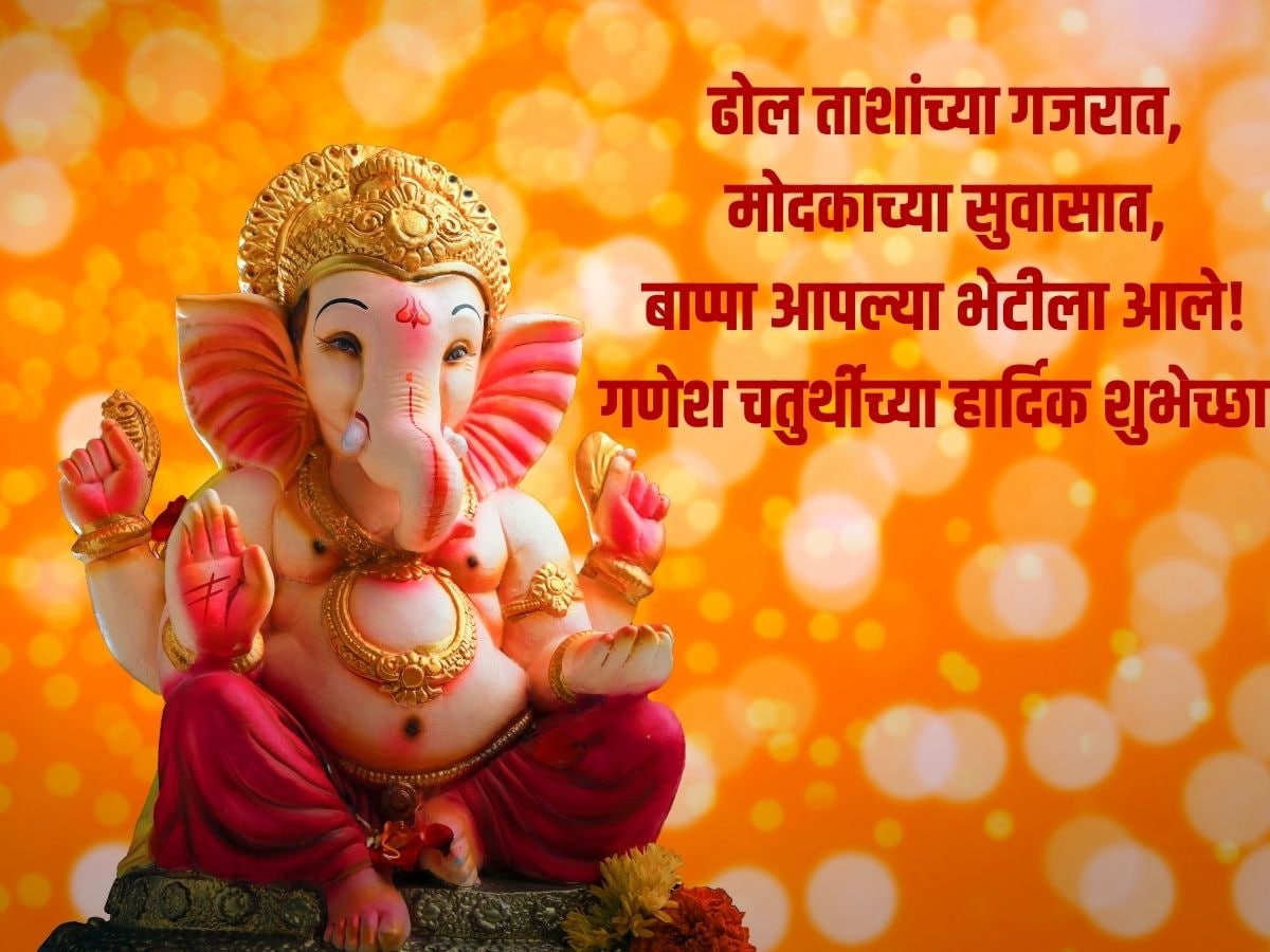 Happy Ganesh Chaturthi Whatsapp Status In Marathi : गणेशोत्सव म्हणून बाप्पाचं स्टेट ठेवायचं असेल तर आम्ही तुमच्यासाठी एकापेक्षा एक हटके असे स्टेटस आणले आहेत. ज्यात गणपतीच्या सुंदर प्रतीमा आणि सोबत शुभेच्छा संदेशही आहेत.