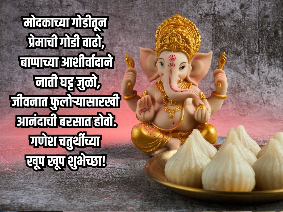 गणेशोत्सवासाठी तुमच्या कुटुंबाला, मित्रमैत्रिणींना, खास व्यक्तींना, प्रियजनांना देण्यासाठी हटके अशा शुभेच्छा आम्ही घेऊन आलो आहोत. गणेशोत्सवाच्या अशा शुभेच्छा, ज्या लाडक्या बाप्पाला आवडणाऱ्या मोदकाइतक्याच गोड आहेत. ज्या वाचल्यानंतर प्रियजनांचा गणेशोत्सवाचा उत्साह अधिक द्विगुणित होईल.