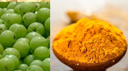 केसांसाठी फायदेशीर - आवळा मुळांना पोषण देतो आणि केस गळती थांबवतो, तर हळद टाळूला निरोगी ठेवते.