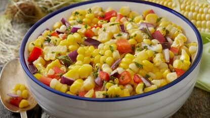 सॅलडची एक सोपी पाककृती - एका भांड्यात टरबुजाचे तुकडे आणि उकडलेले मक्याचे दाणे एकत्र करा. त्यात बारीक चिरलेला ताजा पुदिना घाला. पुदिना हा या सॅलडचा मुख्य घटक आहे, यामुळे उन्हाळ्यात पोटाला थंडावा मिळतो.