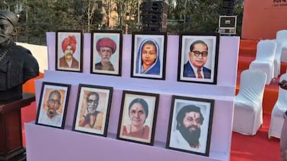 छत्रपती शिवाजी महाराजांच्या पुतळ्यासह छत्रपती शाहू, फुले दाम्पत्य, डॉ.बाबासाहेब आंबेडकर, प्रबोधनकार ठाकरे, बाळासाहेब ठाकरे, मीनाताई ठाकरे आणि आनंद दिघे यांची प्रतिमा आहे.