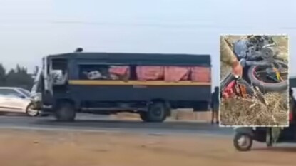 बीड: बीडमधून एक धक्कादायक बातमी समोर आली आहे. अहमदपूर-अहिल्यानगर राष्ट्रीय महामार्गावर ज्ञानराधा बँकेच्या सुरेश कुटे आणि अर्चना कुटे या दोन घोटाळेबाजांना घेऊन जात असलेल्या पोलीस व्हॅनचा अपघात झाला आहे. या अपघातात दुचाकीवरील दोन तरूण गंभीर जखमी झाले होते, त्यापैकी एका तरुणाचा अपघातात मृत्यू झाला आहे.