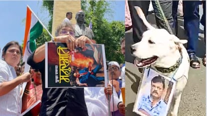 आव्हाडांविरोधात भाजप आक्रमक, राज्यभरात आंदोलन; कुत्र्याच्या गळ्यात फोटो अडकवून निषेध