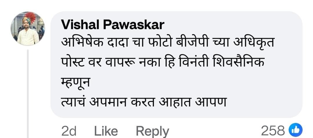यावरून संतप्त शिवसैनिकांनी “अभिषेक घोसाळकर यांचा मरणोत्तर भाजपप्रवेश झाला का?” असा खोचक सवाल उपस्थित केला आहे. दिवंगत नेत्यांच्या नावाचा आणि छायाचित्राचा राजकीय फायद्यासाठी वापर करणे चुकीचे असल्याचा आक्षेपही त्यांनी नोंदवला आहे.