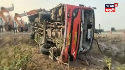 नगर-कल्याण महामार्गावर भीषण अपघात, 53 विद्यार्थ्यांना सहलीला घेऊन जाणारी बस उलटली