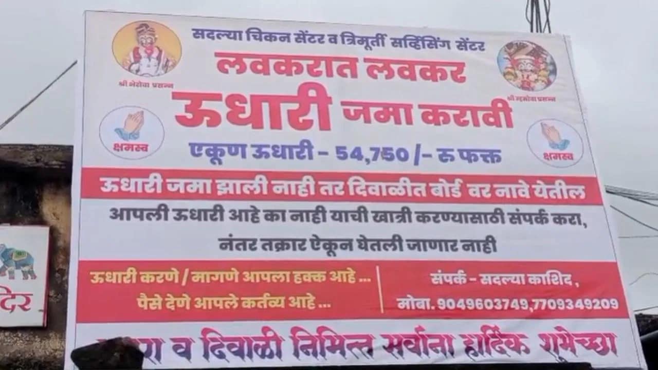 कोल्हापूर :गावाकडच्या छोट्या दुकानांमध्ये उधारीवर व्यवहार करणे ही काही नवी गोष्ट नाही. मात्र, या उधारीमुळे दुकानदारांची अडचणही वाढते. अशीच परिस्थिती कोल्हापूर जिल्ह्यातील बहिरेश्वर गावातल्या एका मटण विक्रेत्याला आली. ग्राहकांकडील उधारीची रक्कम वसूल करण्यासाठी त्याने एक भन्नाट उपाय शोधून काढला आहे. गावच्या चौकात त्याने मोठा बोर्ड लावून त्यावर एकूण उधारीची रक्कम नमूद केली असून, दिवाळीपूर्वी पैसे न भरल्यास उधारीदारांची नावे जाहीरपणे लिहिण्याचा इशारा दिला आहे.