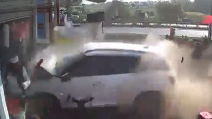 भरधाव वेगाने येणाऱ्या कारच्या ड्रायव्हरचा ताबा सुटला आणि कार थेट हॉटेलमध्ये घुसली.