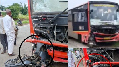 Nashik Satana Bike ST Accident: सटाण्याजवळ साक्री-शिर्डी मार्गावर एसटी बस आणि दुचाकीची समोरासमोर धडक होऊन झालेल्या या भीषण अपघातात दुचाकीवरील तिन्ही तरुणांचा जागीच मृत्यू झाला.
