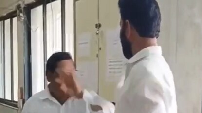 असिफ मुर्सल, सांगली, 19 ऑगस्ट : भूमी अभिलेख कार्यालयात बोगस लोक काम करत असल्याचा आरोप करत शिवसेनेच्या ठाकरे गटाच्या पदाधिकाऱ्यांनी कर्मचाऱ्यांच्या कानशिलात लगावल्याचा प्रकार समोर आला आहे. सरकारी कागदपत्रे बोगस लोकांच्या हातात दिली असून भूमी अभिलेख कार्यालयात अनागोंदी कारभार सुरू असल्याचा आरोप यावेळी पदाधिकाऱ्यांनी केला. तासगाममध्ये ठाकरे गटाच्या शिवसेना तालुका प्रमुखाने भूमी अभिलेख कर्मचाऱ्यांवर संताप व्यक्त केला.