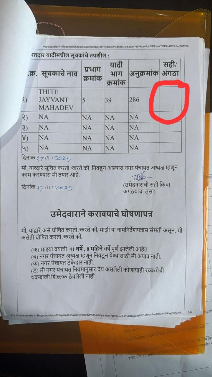 सोलापूर : नगरपंचायत आणि नगरपरिषद निवडणुकीचा धुराळा उडाला आहे. राज्यभरात ठिकठिकाणी उमेदवार आता मैदानात उतरले आहे. काही ठिकाणी बिनविरोध झाल्यामुळे गुलाल उधळला गेला आहे. त्यातच सोलापूरमधील अनगर नगर परिषद निवडणूक चांगलीच गाजली आहे. राष्ट्रवादी अजित पवार गटाच्या उमेदवार उज्वला थिटे यांचा अर्ज बाद झाल्यामुळे भाजपचे नेते राजन पाटील यांनी विजयी गुलाल उधळला. पण, थिटे यांनी अर्ज बाद प्रकरणी कोर्टात धाव घेण्याची घोषणा केली. मात्र, आता थिटे यांचा अर्जच समोर आला, ज्यामध्ये नेमकी चूक समोर आली आहे.