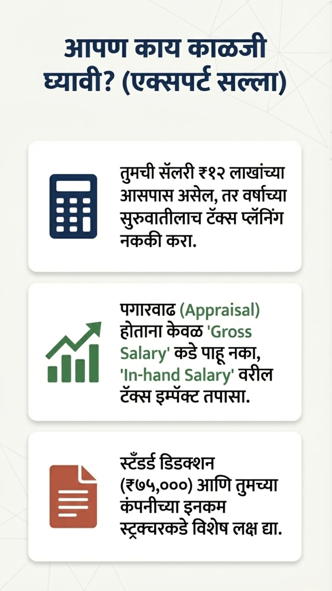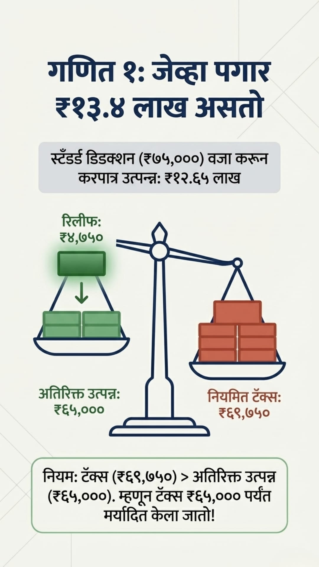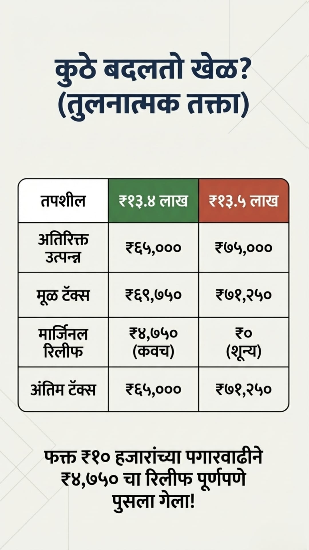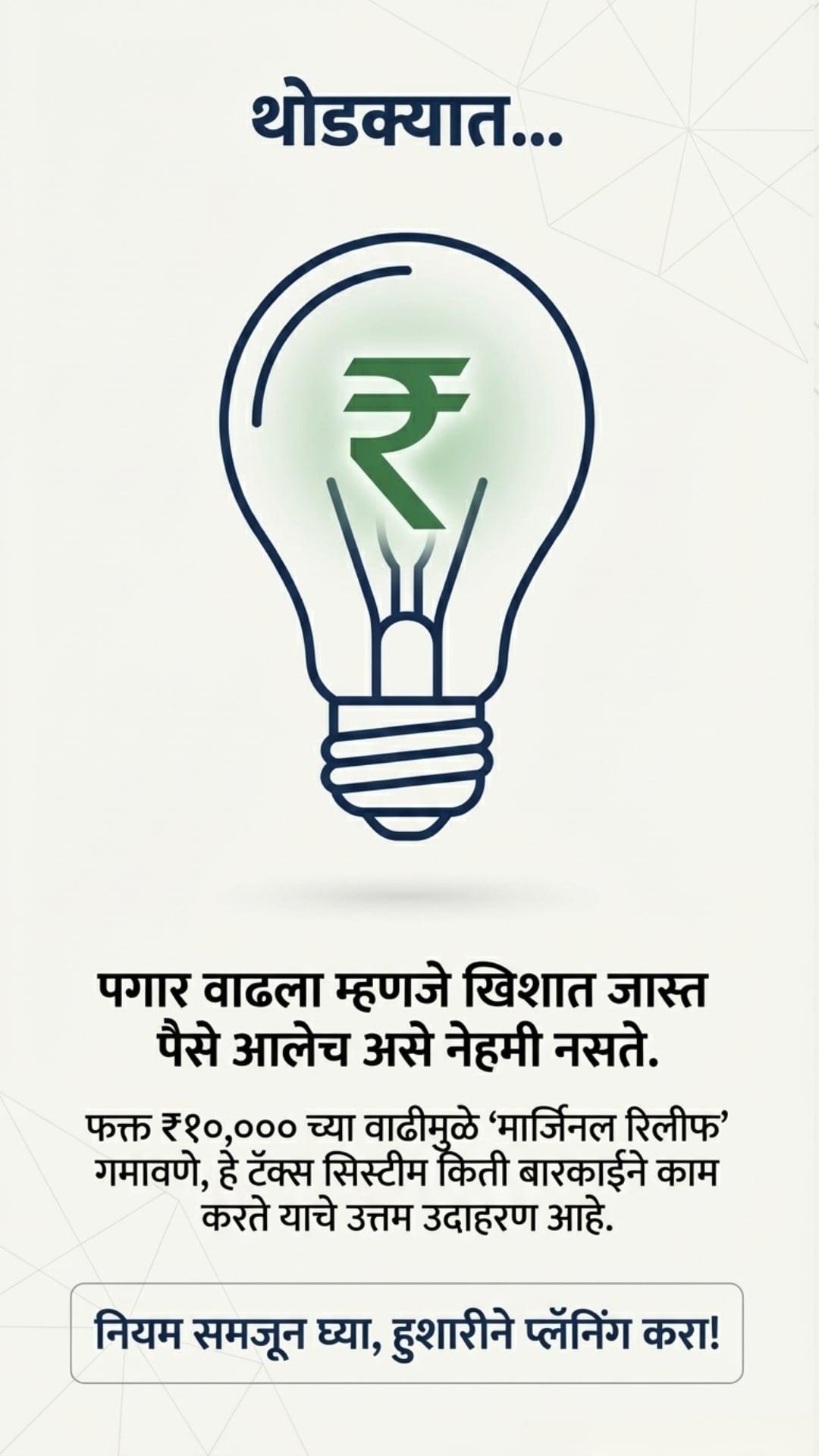 ही तरतूद प्रामुख्याने अतिरिक्त कमाई आणि देय कर यामध्ये संतुलन राखण्याचे काम करते. पगार वाढल्याचा अर्थ नेहमीच जास्त फायदा असा होत नाही, त्यामुळे कर नियोजनाकडे बारकाईने लक्ष देणे आवश्यक आहे. टॅक्स सिस्टीममधील हा सूक्ष्म बदल मध्यमवर्गीयांच्या निव्वळ उत्पन्नावर मोठा परिणाम करू शकतो.