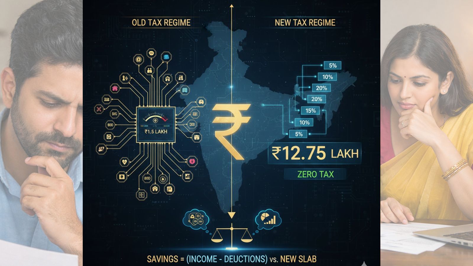 12 लाखांपर्यंत उत्पन्न असल्यास → नवीन रेजीम = Zero Tax, जुनीचा प्रश्नच नाही