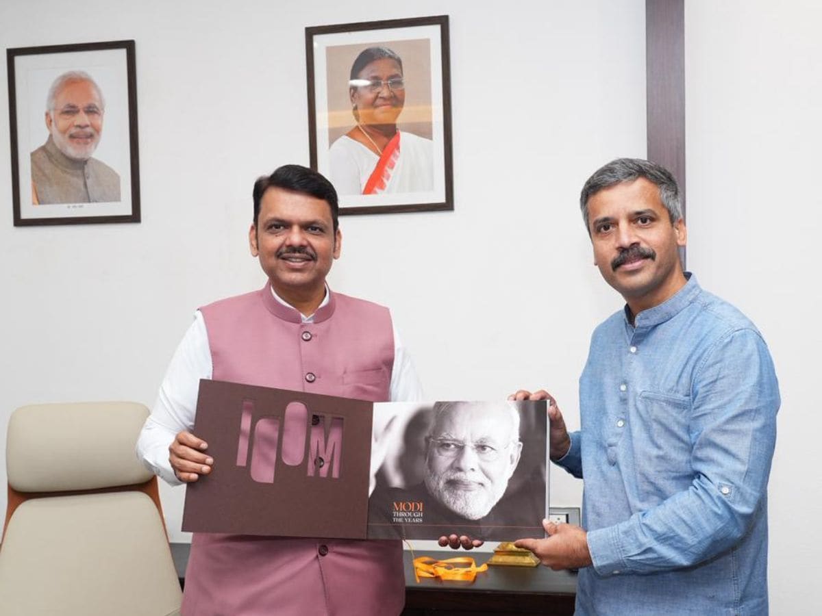 देवेंद्र फडणवीस यांना 'मोदी @75' या कॉफी टेबल बुकची प्रत भेट; न्यूज 18लोकमतचे संपादक मंदार फणसे यांनी मुख्यमंत्र्यांना दिली खास भेट