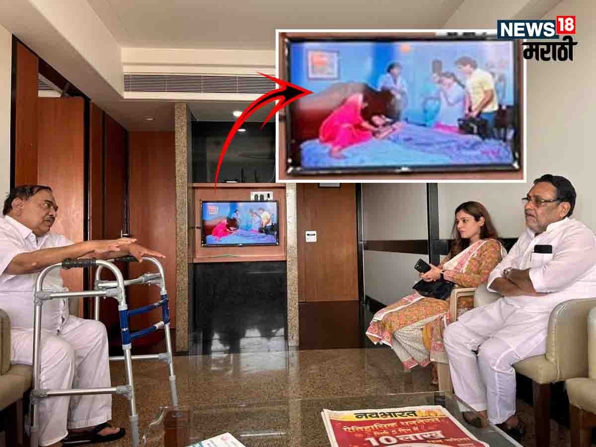 मुंबई, 10 नोव्हेंबर : राष्ट्रवादी काँग्रेसचे नेते एकनाथ खडसे यांना सौम्य हृदयविकाराचा धक्का आल्यामुळे त्यांच्यावर बॉम्बे हॉस्पिटलमध्ये उपचार सुरू आहेत. राष्ट्रवादीचे नेते नवाब मलिक यांनी हॉस्पिटलमध्ये जाऊन एकनाथ खडसे यांच्या प्रकृतीची विचारपूस केली, या भेटीचा फोटो सध्या सोशल मीडियावर व्हायरल होत आहे. याला कारण आहे खडसेंच्या रुग्णालयातल्या खोलीत असलेला टीव्ही. या टीव्हीवर मराठीमधला सगळ्यात सुपरहिट चित्रपट अशी ही बनवाबनवी सुरू आहे.