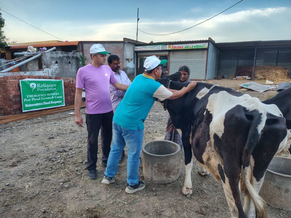 सोलापूर जिल्ह्यातील पशुधनाच्या आरोग्यासाठी रिलायन्स फाउंडेशन आणि जिल्हा प्रशासनाच्या सहकार्याने पशुवैद्यकीय शिबिरं आयोजित केली गेली. उपचार आणि औषधोपचाराबरोबरच पुरानंतर पसरणाऱ्या हॅमरेजिक सेप्टीसीमिया आणि ब्लॅक क्वार्टर (HS-BQ) सारख्या जीवघेण्या आजारांपासून संरक्षणासाठी 22000 जनावरांना लसीकरण करण्यात आलं. यासाठी पशुसंवर्धन विभागाच्या जोखीम मूल्यांकनावर आधारित HS-BQ लस पुरवण्यात आल्या.