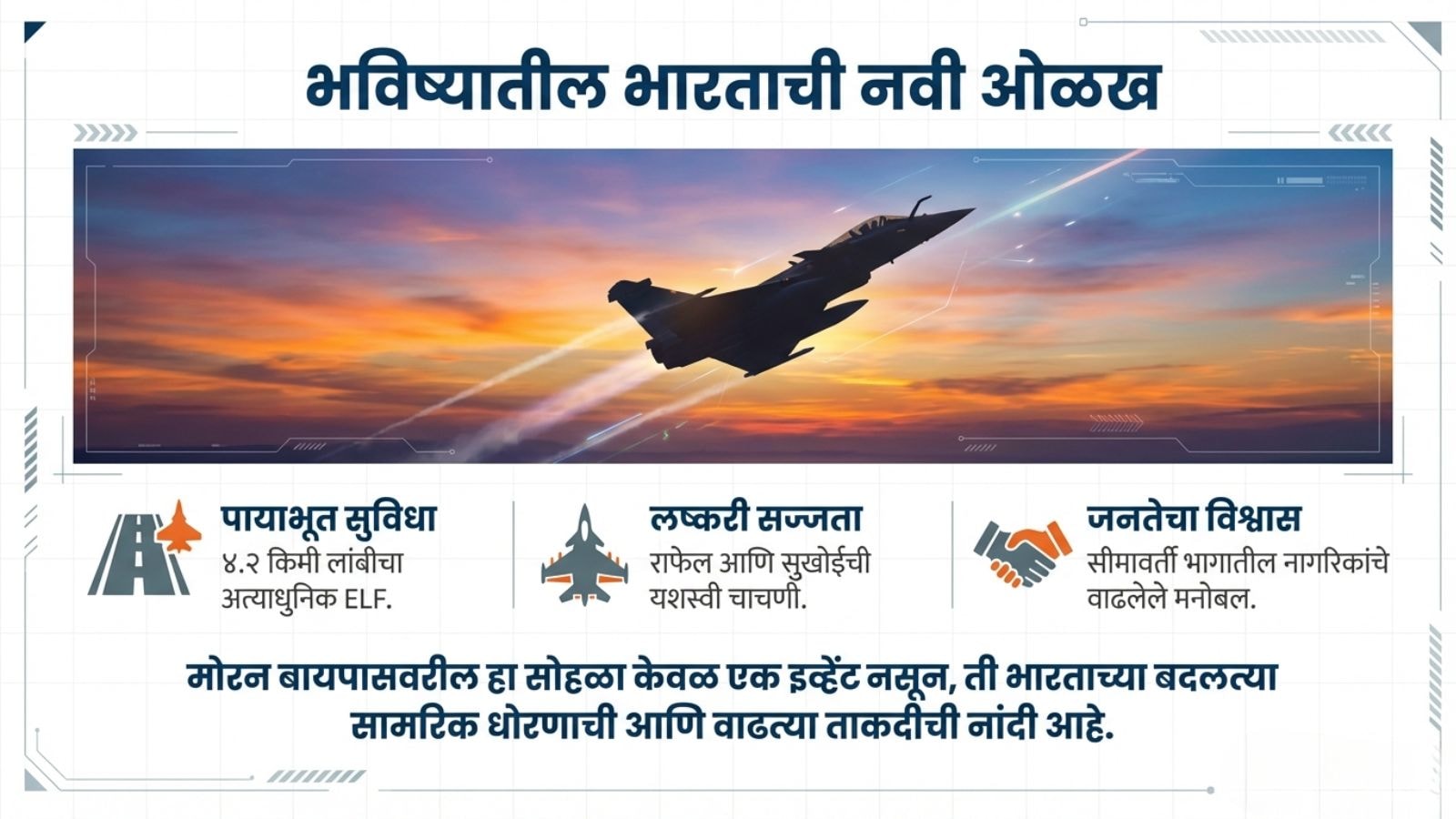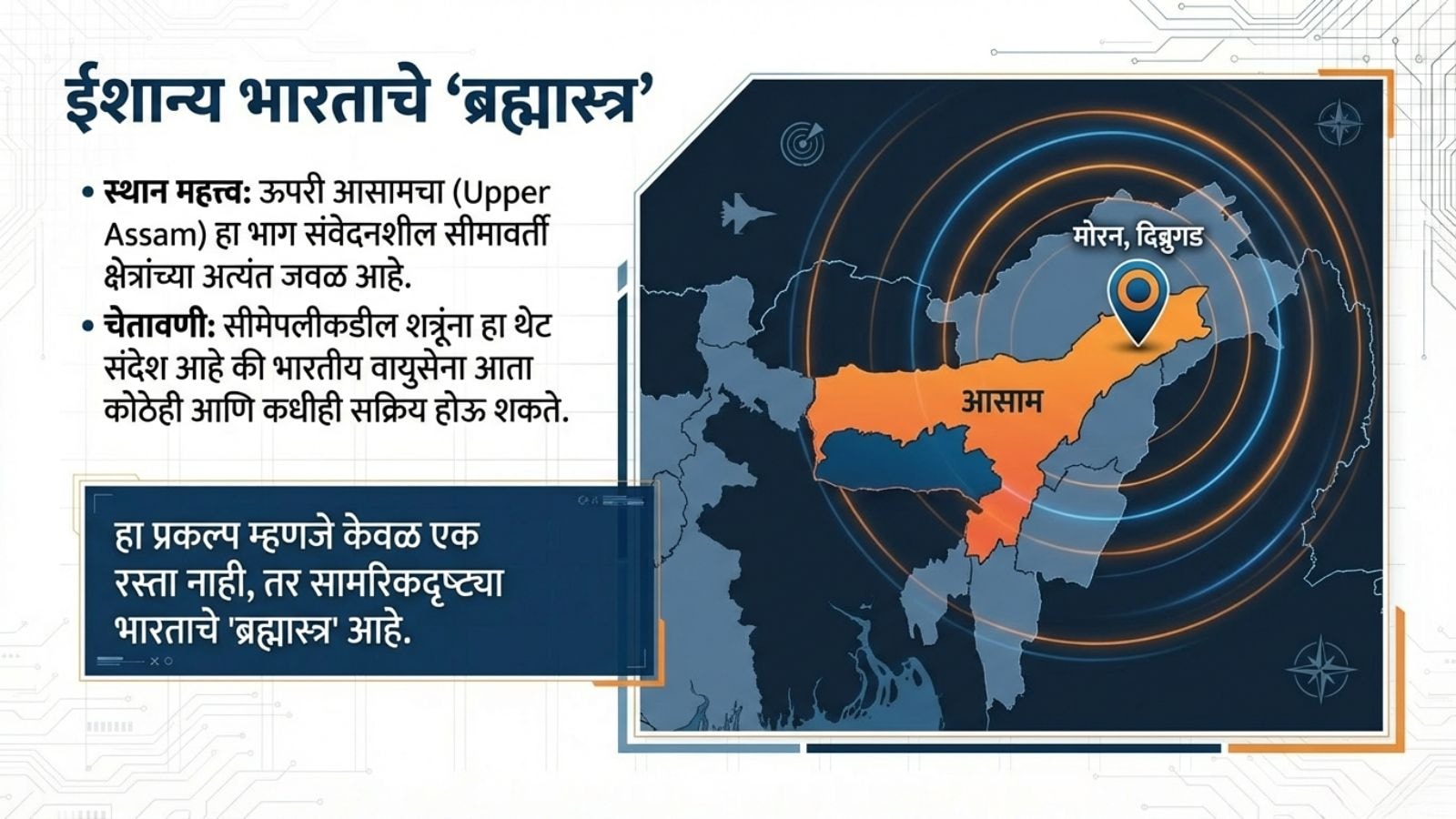 Moran Bypass: असममधील मोरान बायपासवर राफेल आणि सुखोईसारख्या लढाऊ विमानांची लँडिंग करत पूर्वोत्तर भारतातील पहिल्या आपत्कालीन लँडिंग सुविधेचे उद्घाटन करण्यात आले. सीमावर्ती भागात झालेल्या या शक्तिप्रदर्शनातून भारताने रणनीतिक सज्जतेचा ठाम संदेश दिला.