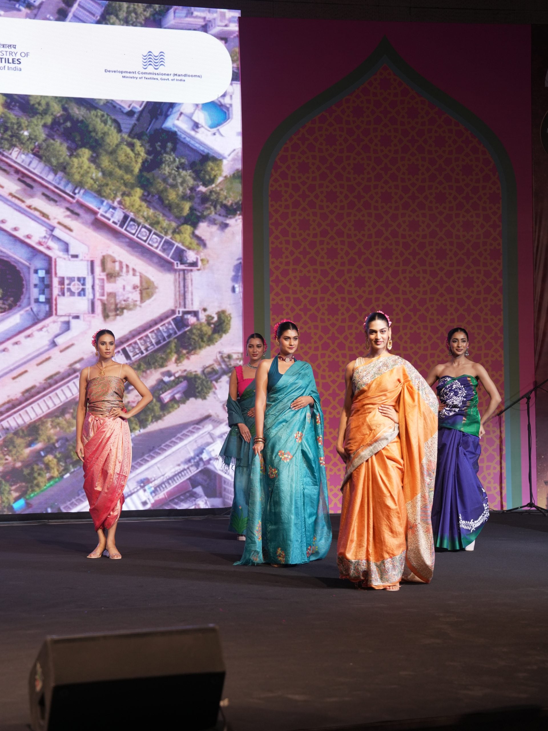 कार्यक्रमाची पहिली थीम होती हातमाग ते सिल्व्हर स्क्रीन. १९४० च्या दशकातील ब्लॅक अँड व्हाईट सिनेमातल्या अभिनेत्रींनी नेसलेली साडी असो वा आजच्या काळातील मॉडर्न ड्रेपिंग... प्रत्येक दशकातील आयकॉनिक साड्या जेव्हा मॉडेल नेसून आल्या, तेव्हा जुन्या आठवणींना उजाळा मिळाला. मुख्यमंत्री रेखा गुप्ता यांनी यावेळी एका महत्त्वाच्या मुद्द्याला हात घातला, त्या म्हणाल्या, "हातमाग धाग्यांनी कथा विणतो, तर सिनेमा प्रकाशाच्या चौकटीत! साडी हे केवळ वस्त्र नाही, तर ती आपली सांस्कृतिक ओळख आहे जी पिढ्यानपिढ्या पडद्यावर दिमाखात झळकत आली आहे."