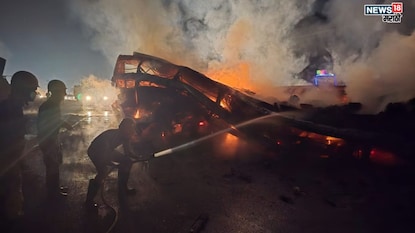 हायवेवर अग्नितांडव, गोकर्णला जाणाऱ्या बसला भीषण अपघात, गाढ झोपलेल्या 17 जणांचा कोळसा