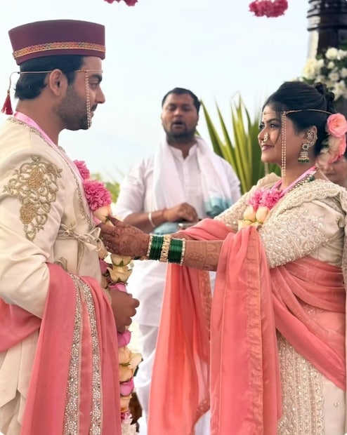 Atharva Karve Sakshi Mahajan Wedding : ऑनस्क्रिन पती-पत्नीची भूमिका साकारणारा अभिनेता अथर्व कर्वे आणि अभिनेत्री साक्षी महाजन यांचा लग्नसोहळा संपन्न झाला आहे.
