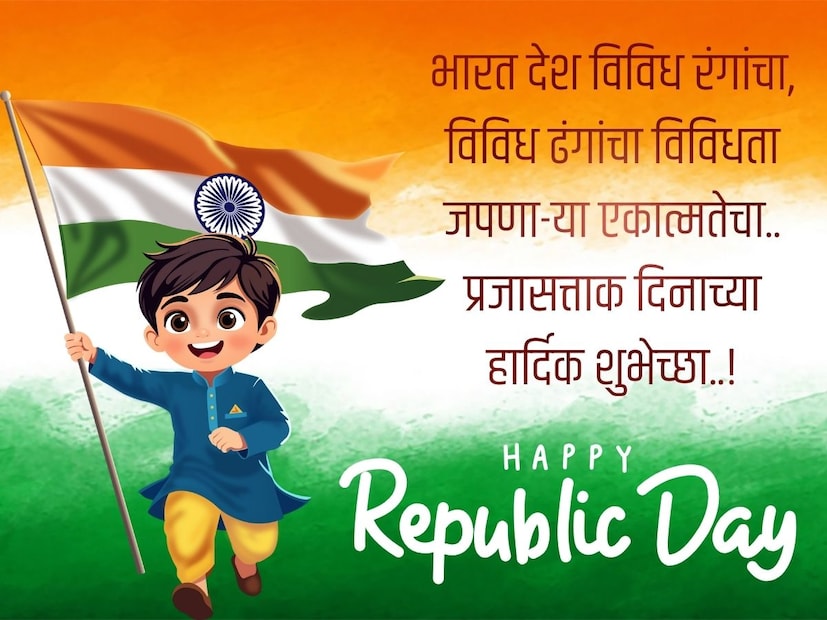 Republic Day 2026 Wishes and Quotes in Marathi : दरवर्षी 26 जानेवारीला प्रजासत्ताक दिन साजरा केला जातो. प्रत्येकजण आपापल्या पद्धतीने हा दिवस साजरा करतो. या खास प्रसंगी लोक एकमेकांना प्रजासत्ताक दिनाच्या शुभेच्छा देतात. तुम्हालाही प्रजासत्ताक दिनाच्या शुभेच्छा तुमच्या मित्रपरिवाराला आणि नातेवाईकांना पाठवायच्या असतील तर हे निवडक संदेश पाहा.
