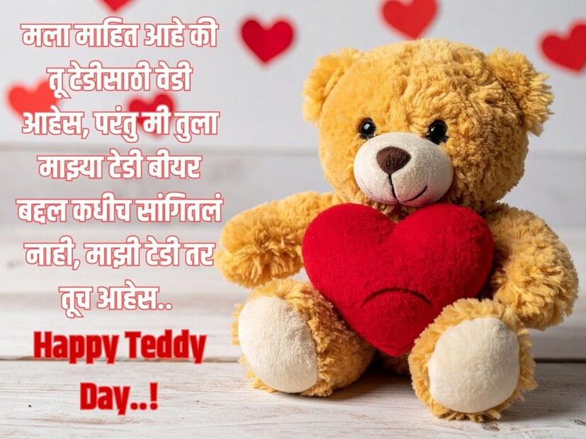 Teddy Day Wishes In Marathi : व्हॅलेन्टाईन्स विकमधील आणखी एक दिवस म्हणजे टेडी डे. टेडी हा विशेषतः मुलींना तो फारच आवडतो. एखाद्याला टेडी देणं म्हणजे त्याचं अर्ध हृदय जिंकण्यासारखंच आहे. म्हणूनच आज तुमच्या आयुष्यातील प्रिय व्यक्तीला टेडीसोबतच टेडी डेच्या या खास शुभेच्छाही द्या.