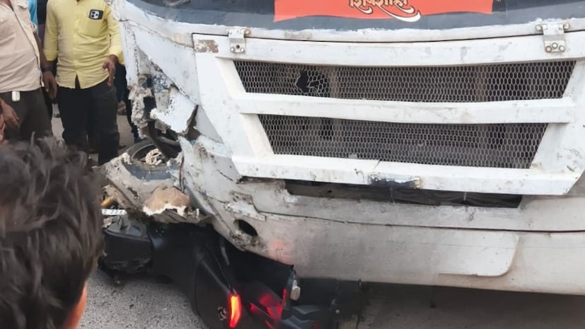 ट्रिपलसीट दुचाकीची शिवशाही बसला धडक, एसटीच्या चाकाखाली आल्याने तिघांचा जागेवर मृत्यू; धडकी भरवणारे फोटो