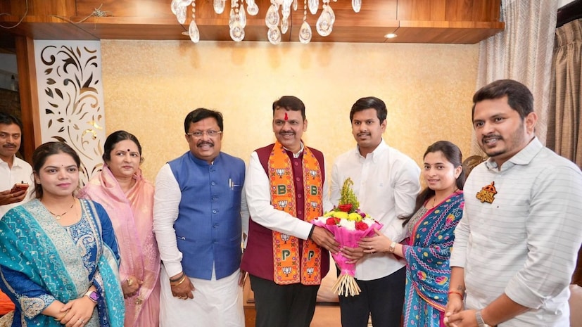 शिंदेंच्या आमदाराच्या घरी मुख्यमंत्री फडणवीसांची भेट, चांदीची तलवार देऊन सत्कार