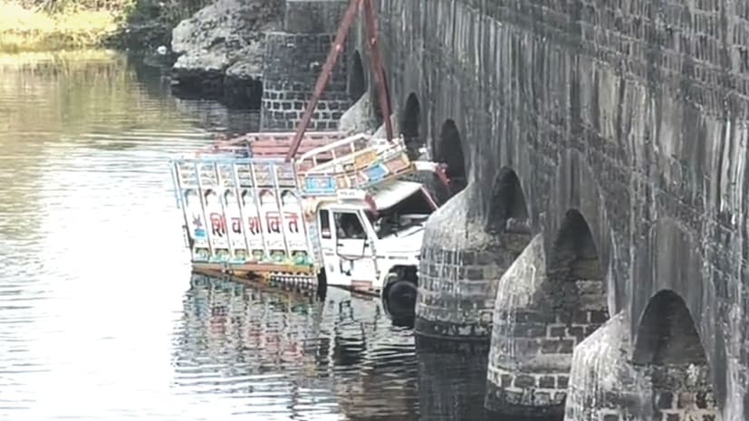 अपघातग्रस्त टेम्पो क्रेनच्या साह्याने बाहेर काढत असताना क्रेनची देखील वायर तुटल्या गेली. यात पुन्हा एकदा हा टेम्पो पाण्यामध्ये कोसळला होता. (मनिष खरात, प्रतिनिधी)