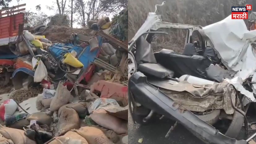 2 ट्रकवर धडकली भरधाव इको, कारचा चक्काचूर एकाच कुटुंबातील सात जणांचा मृत्यू