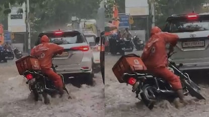 Pune News: पुण्याच्या धो-धो पावसात 'तो' थांबली नाही पण खड्यात पाय अडकला अन्...डिलिव्हरी बॅायला पाहून पुणेकर हळहळला!