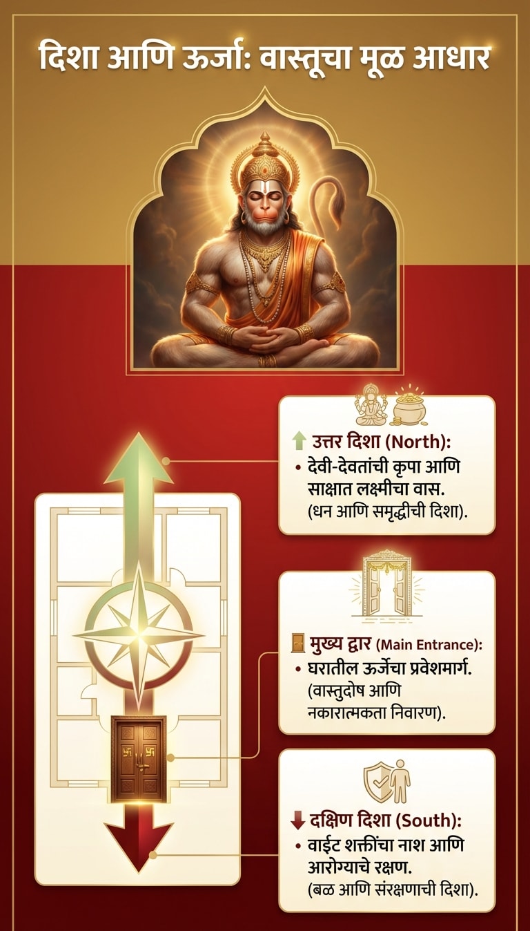 वास्तुशास्त्रानुसार घरामध्ये हनुमानजींच्या प्रतिमा लावणे हे केवळ धार्मिक नसून ते सुख-समृद्धीचे प्रतीक मानले जाते. आपल्या घरातील नकारात्मक ऊर्जा नष्ट करण्यासाठी आणि प्रगतीचे मार्ग मोकळे करण्यासाठी मारुतीची विशिष्ट रूपे योग्य दिशेला असणे अत्यंत महत्त्वाचे आहे.