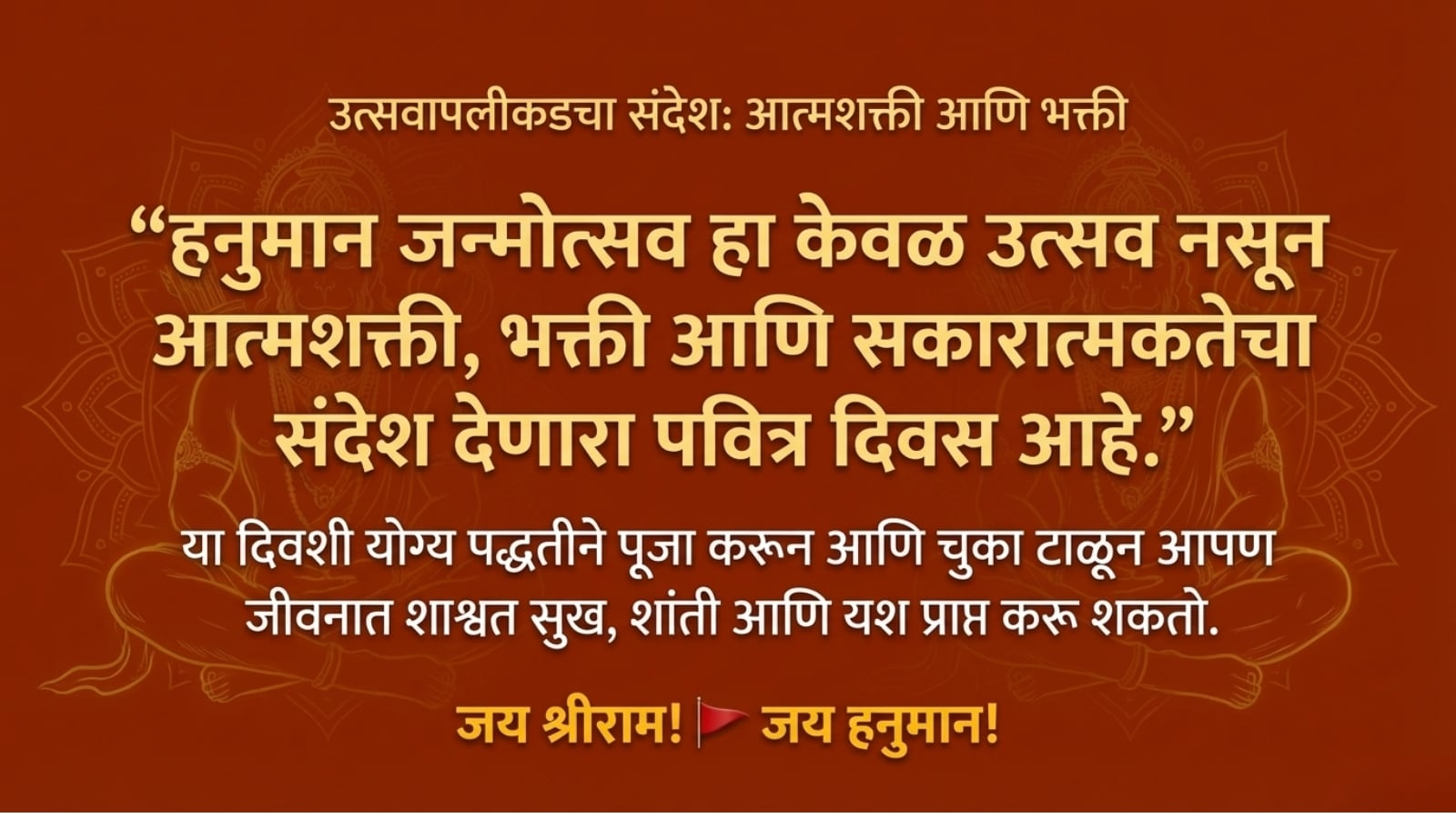 हनुमान जन्मोत्सव हा केवळ उत्सव नसून आत्मशक्ती, भक्ती आणि सकारात्मकतेचा संदेश देणारा दिवस आहे. या दिवशी योग्य पद्धतीने पूजा करून आणि चुका टाळून आपण जीवनात सुख, शांती आणि यश प्राप्त करू शकतो.