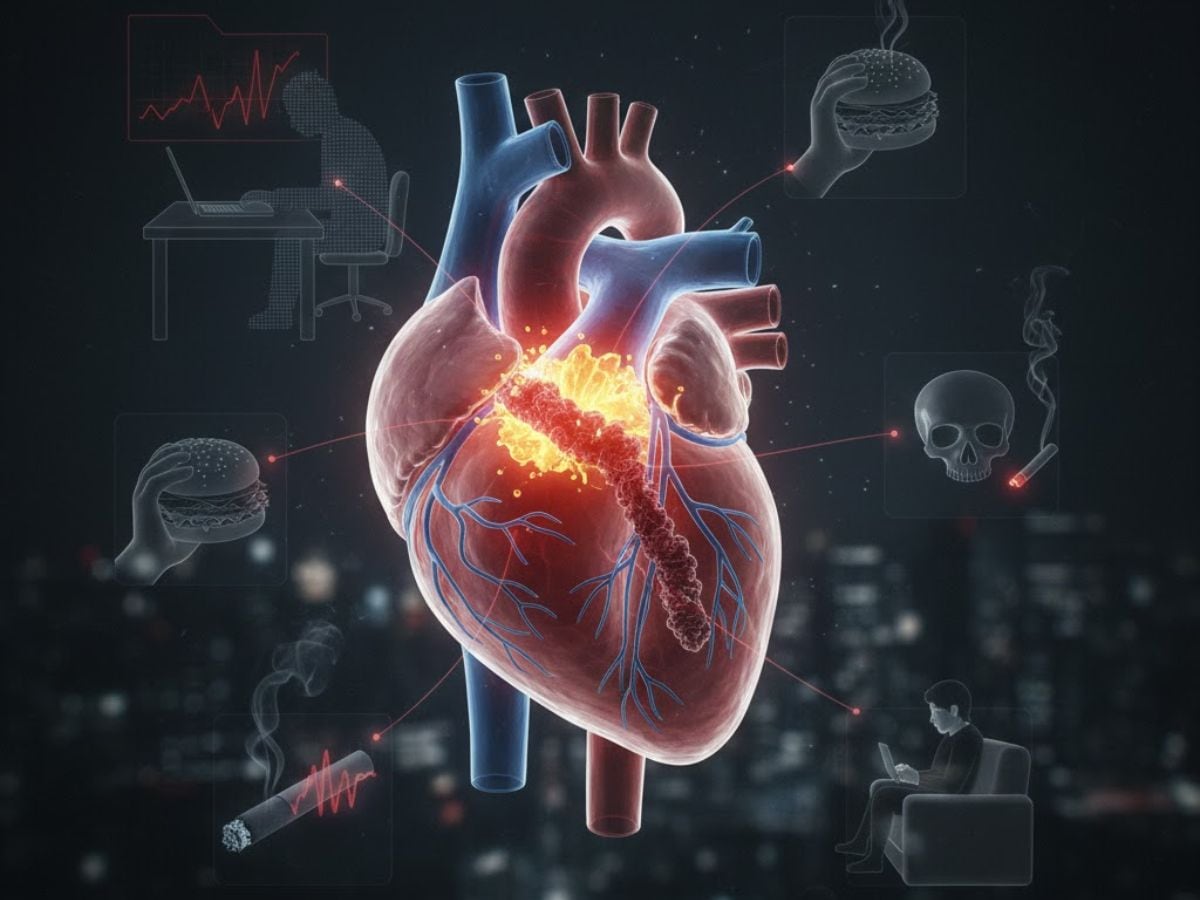 AHA/ACC 2024 च्या मते, हे प्लॅक जर अचानक फाटलं (rupture) तर काही सेकंदांतच platelet-rich clot तयार होतो आणि 30–40% ब्लॉकेज असलेली artery देखील पूर्ण 100% बंद होऊ शकते. यामुळेच अगदी फिट आणि हेल्दी दिसणाऱ्या तरुणांनाही अचानक हार्ट अटॅक येतो.
