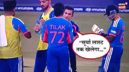 मॅचमध्ये एक असा क्षण आला जेव्हा टीम इंडियाची रनरेट कमी होत होती, तेव्हा हेड कोच गौतम गंभीर स्वतः मैदानात उतरला. ड्रिंक्स ब्रेकदरम्यान गंभीरने मैदानात जाऊन तिलक वर्माला काही खास टिप्स दिल्या. सोशल मीडियावर गंभीरचे हे फोटो सध्या प्रचंड व्हायरल होत आहेत, ज्यामध्ये तो तिलकच्या खांद्यावर हात ठेवून त्याला खेळाबद्दल मार्गदर्शन करताना दिसला. त्यावेळी गंभीरने दोघांना सल्ला दिला की, सूर्या शेवटपर्यंत खेळेल. तू रिस्क घेऊन खेळ... स्वत: तिलक वर्माने याचा खुलासा मॅच संपल्यानंतर केला.