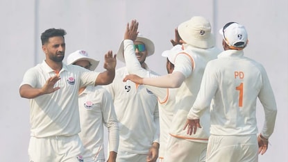 Jammu Kashmir Reach Semi Final : रणजी ट्रॉफी स्पर्धेत जम्मू काश्मीरने मध्य प्रदेशचा 56 धावांनी पराभव करत सेमी फायनलमध्ये प्रवेश केला आहे. जम्मू काश्मीरला हा सामना जिंकूण देण्यात आणि सेमी फायनलला पोहोचवण्यात वेगवान गोलंदाज आकीब नबी डारने मोलाची भूमिका बजावली होती. कारण या सामन्यात त्याने एकट्याने 12 खेळाडूंना आऊट केले होते. आणि हा तोच खेळाडू जो जम्मू काश्मीरचा आयपीएलमधला सर्वात महागडा खेळाडू होता.त्यामुळे दोन महिन्यात त्याने अशी कामगिरी करून पुन्हा एकदा इतिहास रचला आहे.