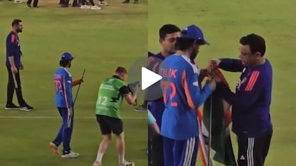 पुन्हा एकदा वर्ल्ड चॅम्पियन झाल्यानंतर भारतीय खेळाडूंनी मैदानात एकच जल्लोष केला. अहमदाबादच्या मैदानात भारतीय खेळाडूंनी तिरंगा घेऊन व्हिक्ट्री परेड केली आणि मॅच पाहायला आलेल्या प्रेक्षकांचे आभार मानले. टीम इंडियाचा बॅटर तिलक वर्मा तिरंगा घेऊन मैदानात व्हिक्ट्री लॅप करत होता, तेव्हा तिरंगा मैदानात पडला. तिलकच्या जेव्हा हे लक्षात आलं तेव्हा त्याने लगेच तिरंगा उचलला आणि तो कपाळाला लावून माफीही मागितली. तिलक वर्माचा हा व्हिडिओ समोर आला आहे, ज्यात त्याच्या कृतीचं चाहते कौतुक करत आहेत.