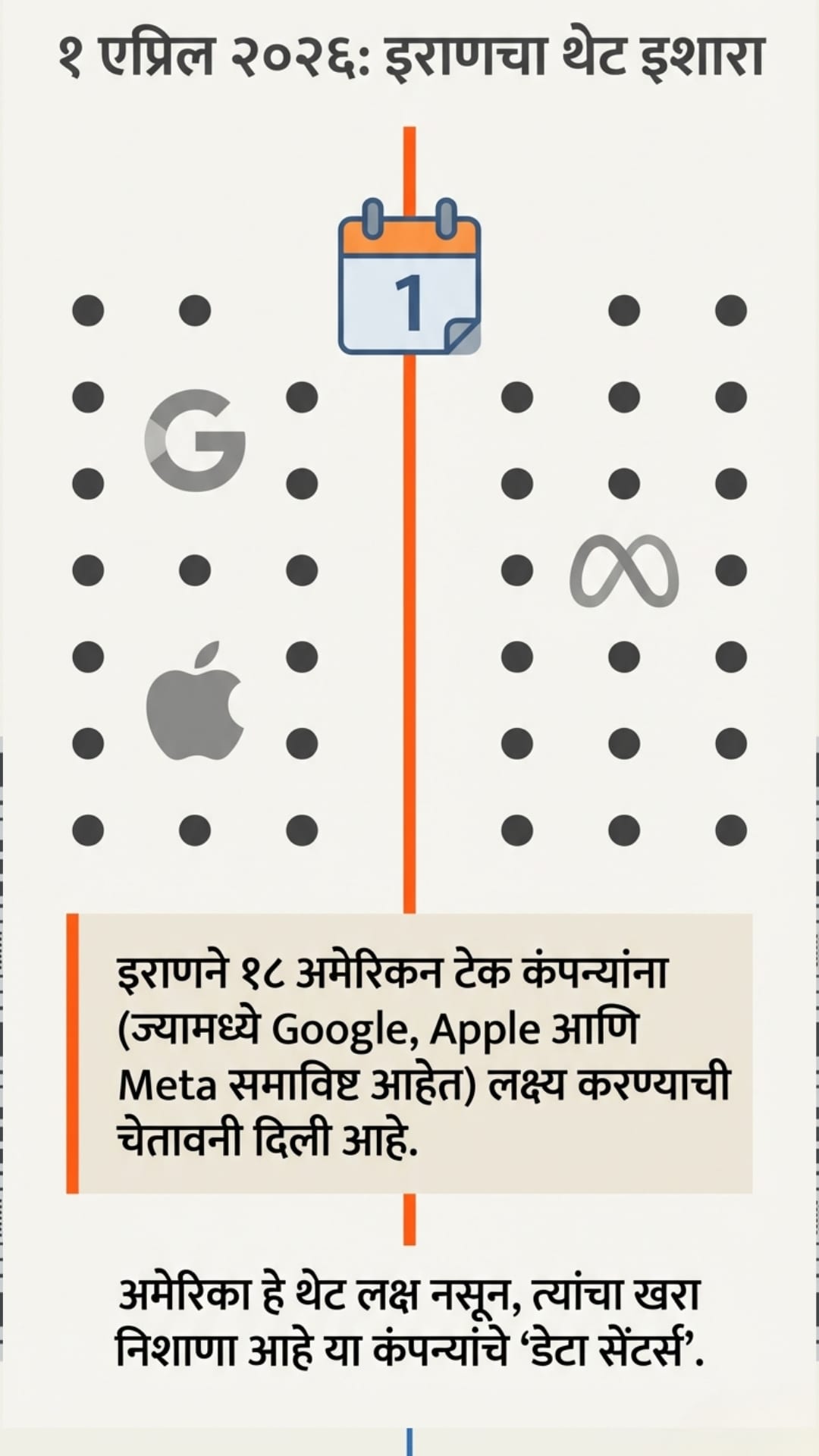 मिडल ईस्टमध्ये सुरू असलेला संघर्ष आता फक्त क्षेपणास्त्र आणि बॉम्बपुरता मर्यादित राहिलेला नाही, तर तो थेट इंटरनेट आणि तंत्रज्ञान कंपन्यांपर्यंत पोहोचला आहे. 1 एप्रिल 2026 रोजी इराणकडून असा इशारा देण्यात आली की, ते सुमारे 18 अमेरिकन टेक कंपन्यांना लक्ष्य करू शकतात. यामध्ये Google, Apple आणि Meta सारख्या मोठ्या कंपन्यांचा समावेश आहे.