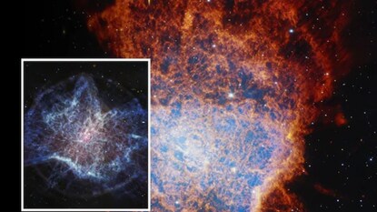 जेम्स वेब स्पेस टेलिस्कोपच्या दोन वेगवेगळ्या कॅमेऱ्यांनी घेतलेल्या छायाचित्रांमध्ये आपल्याला एनसीजी ६०७२ ची अनोखी रचना दिसते. यापैकी एक कॅमेरा ‘निअर-इन्फ्रारेड’ (Near-Infrared) मध्ये आणि दुसरा ‘मिड-इन्फ्रारेड’ (Mid-Infrared) मध्ये छायाचित्रे घेतो.