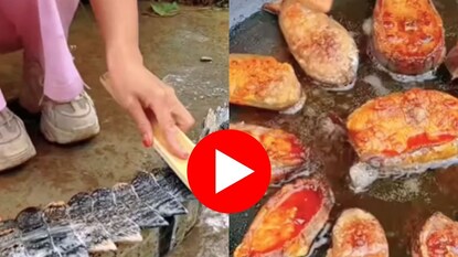 मगरीचं शेपूट घासून धुतलं मग तळून खाल्लं, तरुणीचा विचित्र Video