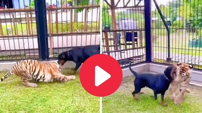 वाघ आणि कुत्रा दोघेही पाळलेले वाटत आहे. त्यामुळे दोघे भांडण करत खेळत असल्याचा अंदाज लावला जाऊ शकतो. अनेक ठिकाणा वाघांना पाळण्यास परवानगी आहे. wildanimalshorts2. 0 नावाच्या इन्टाग्राम अकाऊंटवर हा व्हिडीओ शेअर करण्यात आला आहे. हा व्हिडीओ जोरदार व्हायरल होत आहे.